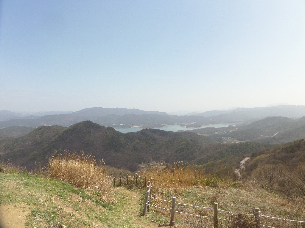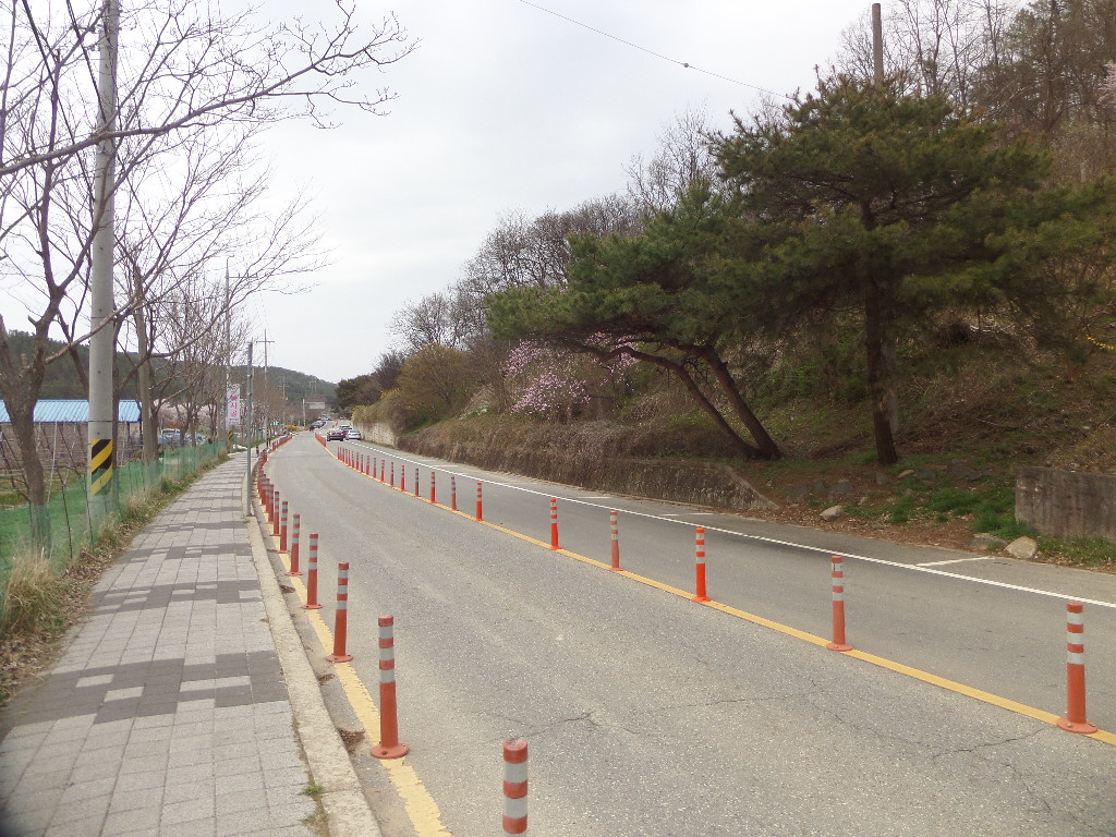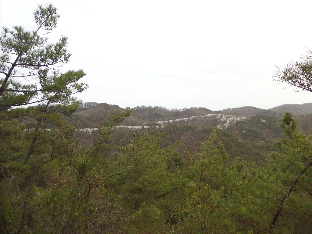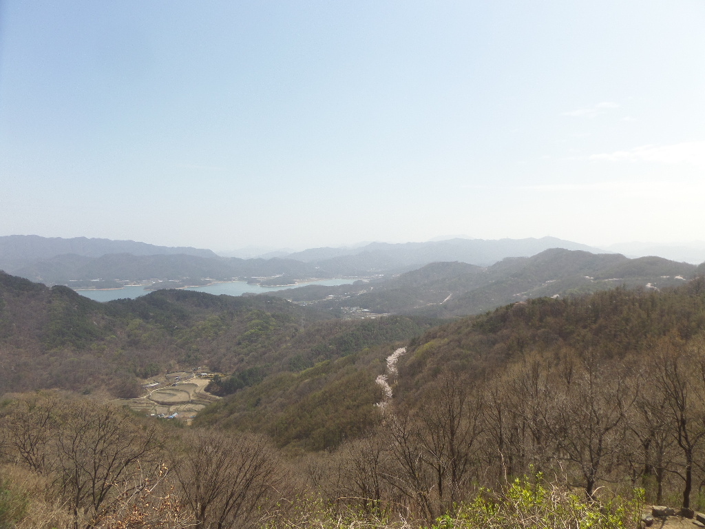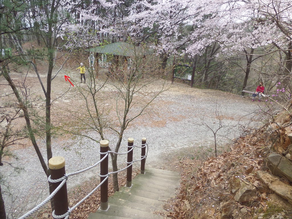 건너편에 계족산 정상이 보이고요 아래 하얀선은 황톳길을 환희 밝혀주는 벚꽃입니다.