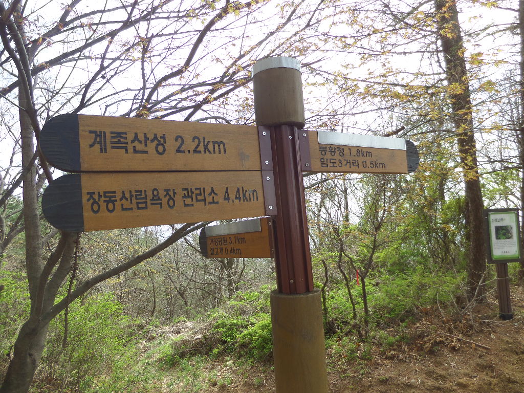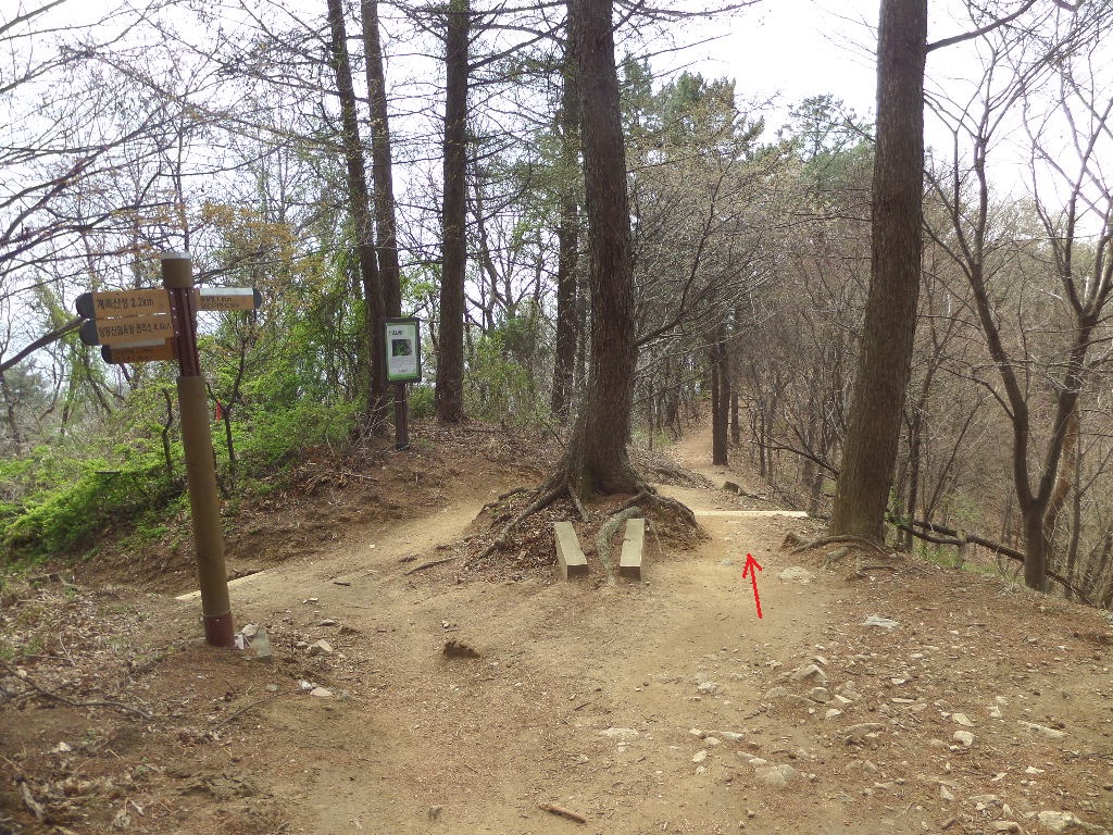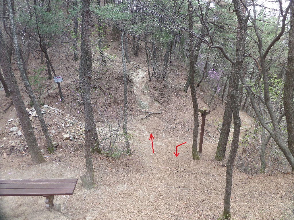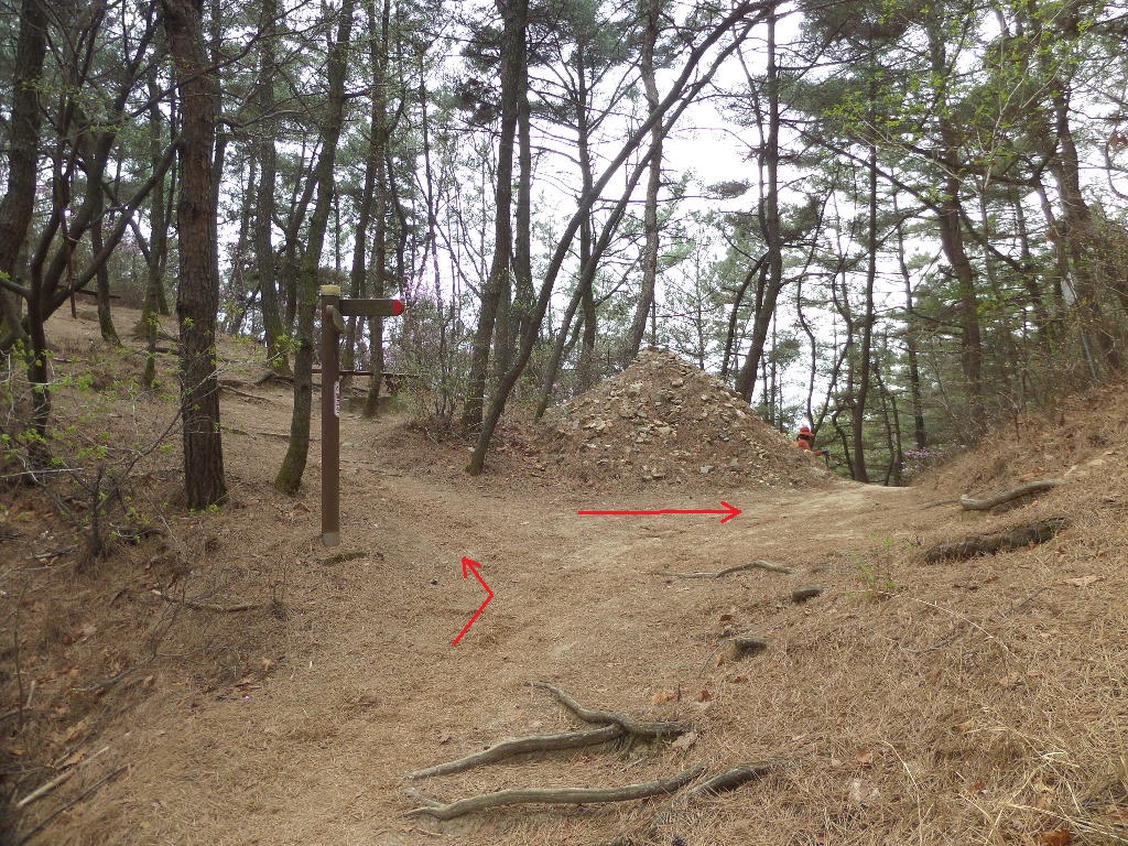 좌측 응봉산으로 갔다가 다시 이 지점으로 돌아와 우측 계족산 정상으로 진행합니다.