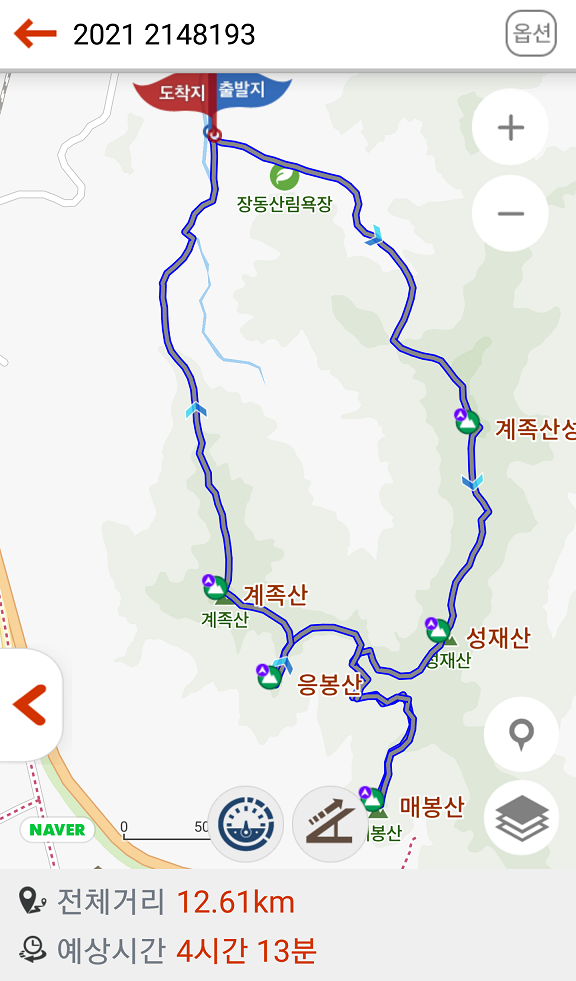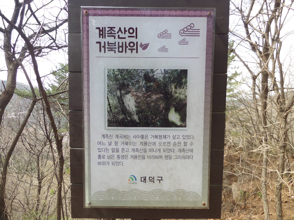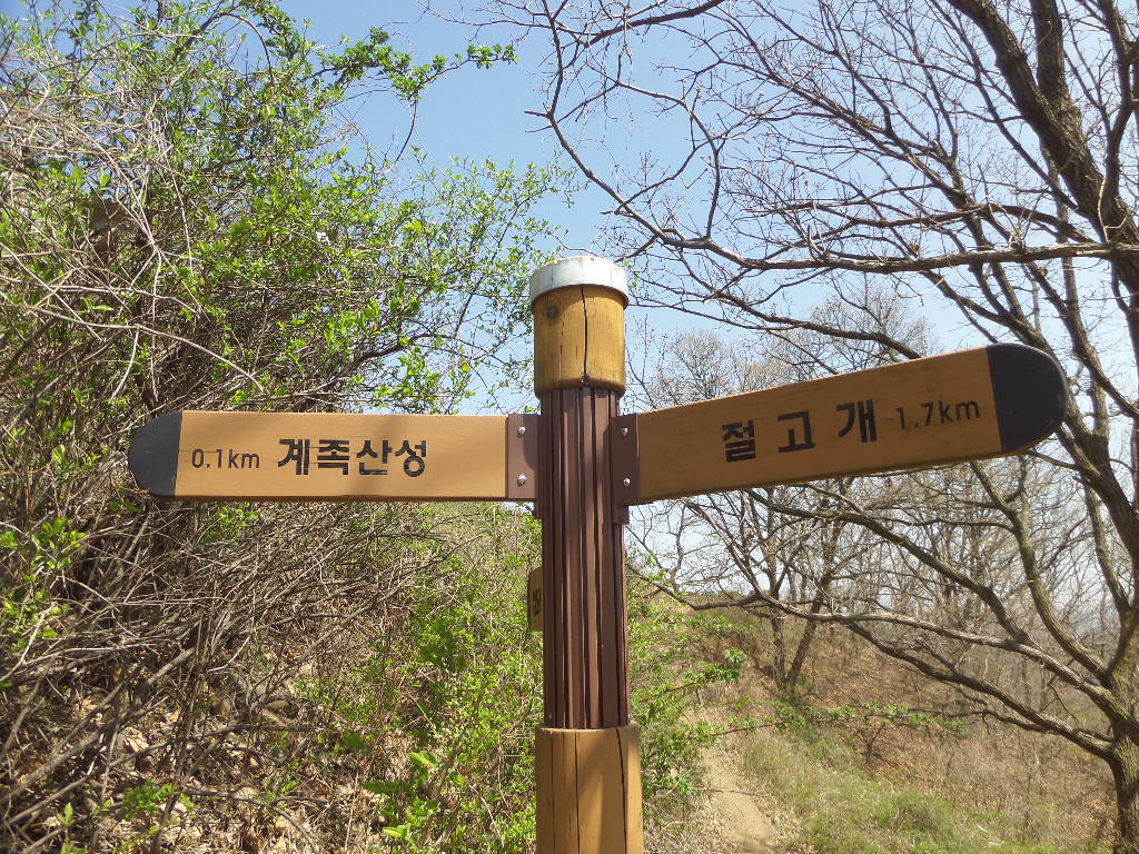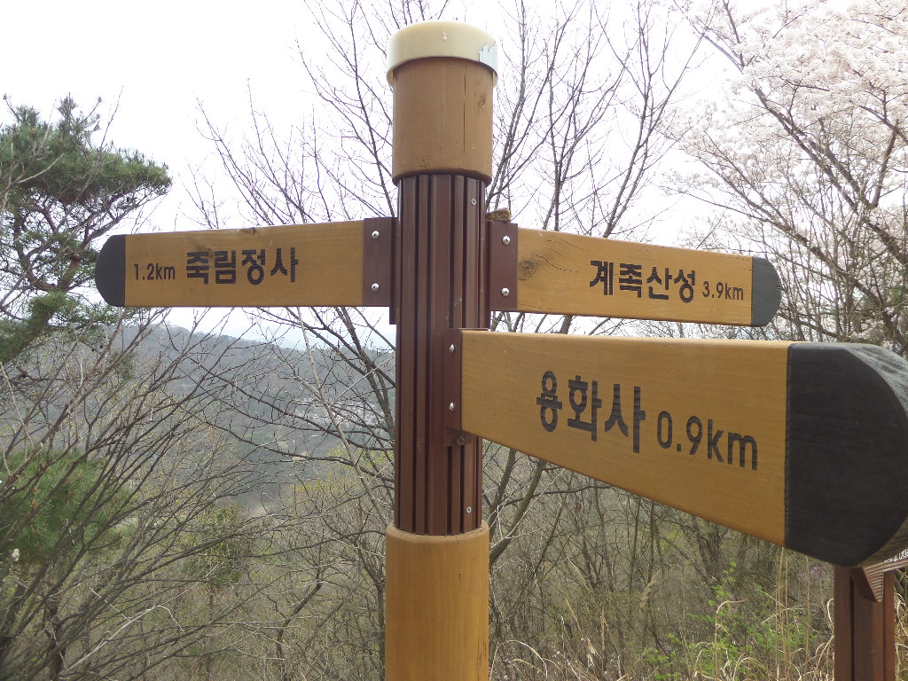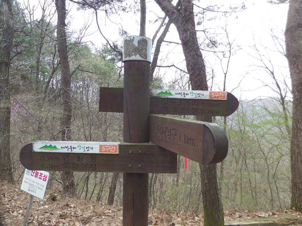 좌측 응봉산으로 갔다가 다시 이 지점으로 돌아와 우측 계족산 정상으로 진행합니다.