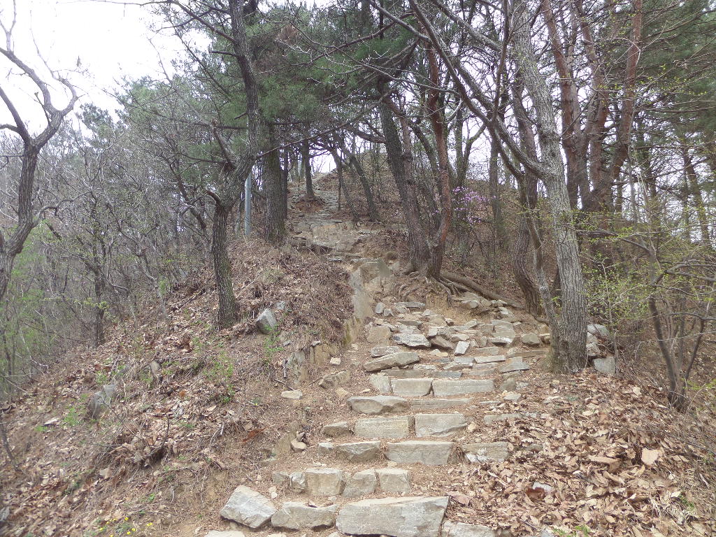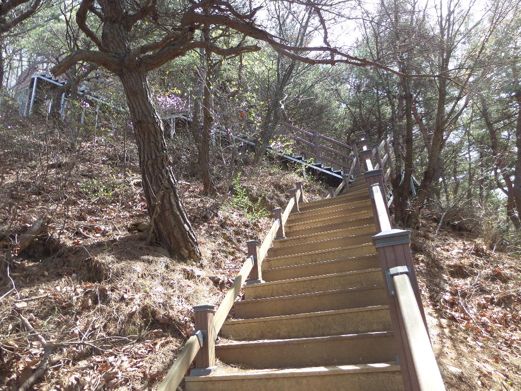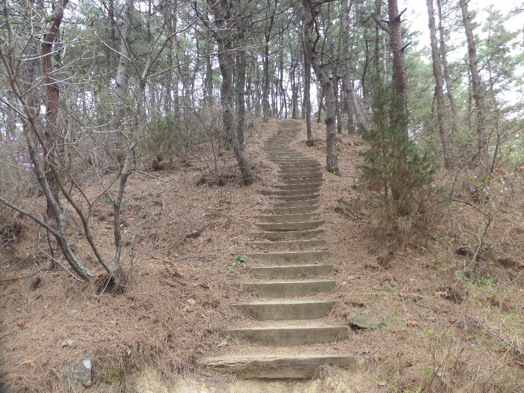 계족산 정상 직전의 가파른 돌계단을 올라서면...