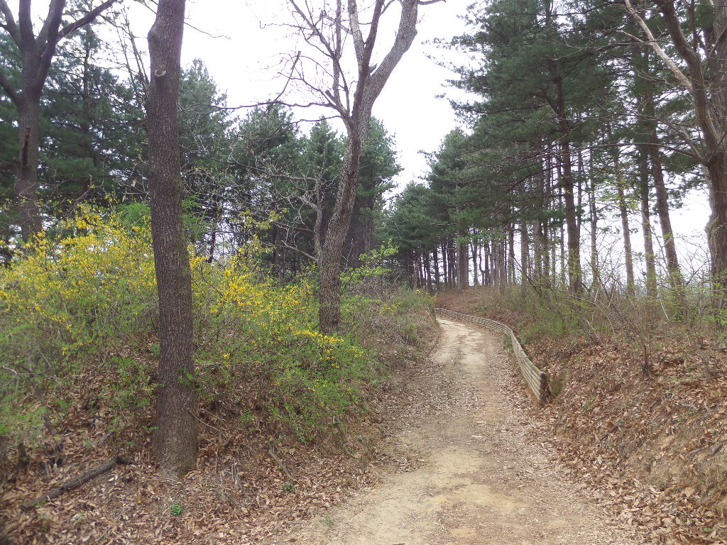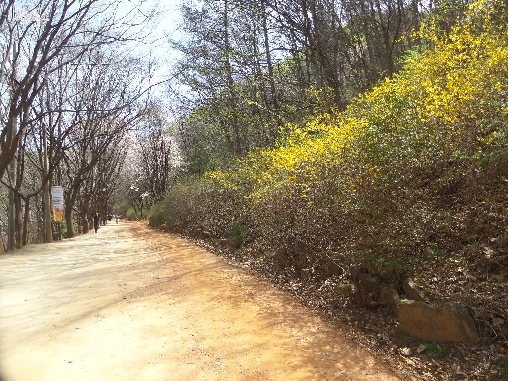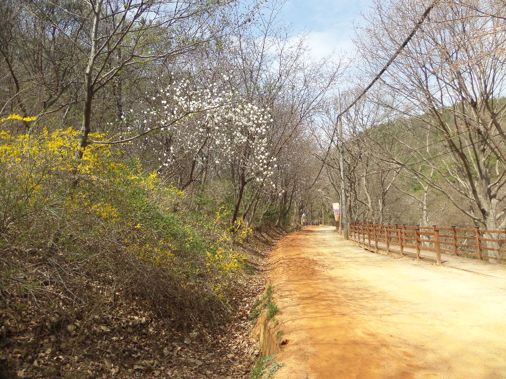 개나리,벚꽃이 만개한 황톳길을 따릅니다.