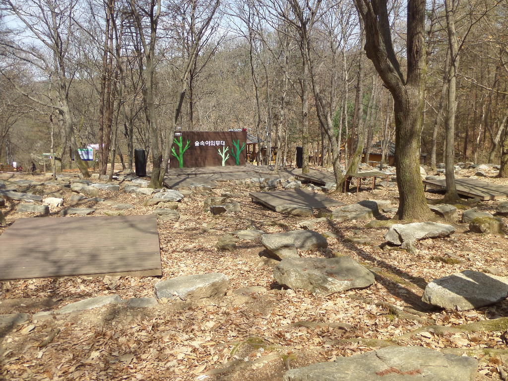 입구에서 황톳길을 따라오다 숲속야외무대를 만나면서 우측 계족산성 방향으로 산행을 시작합니다.