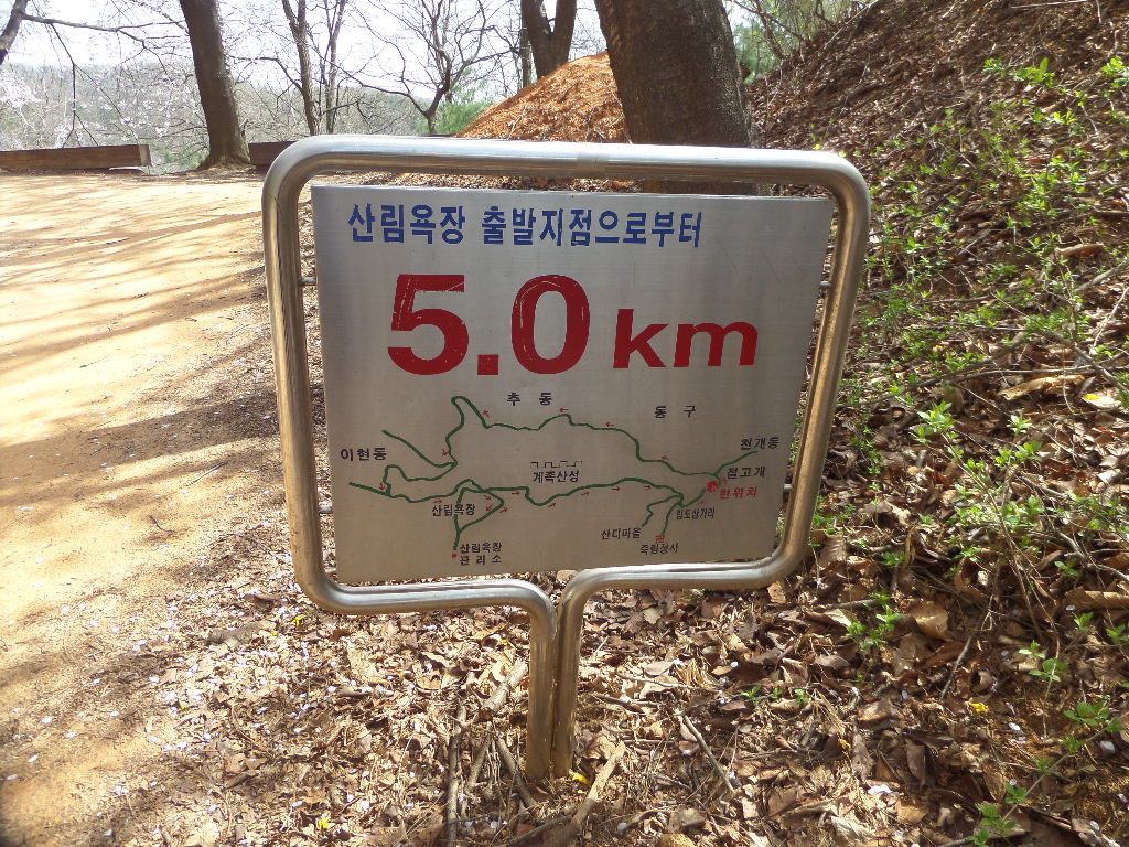 우측 매봉산 방향으로 꺽어지는 지점에 위치한 5Km 지점 안내문