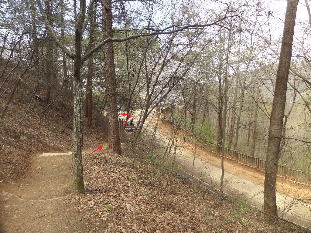참새골 고개에서 우측으로 하산해서 주차장으로 진행합니다.
