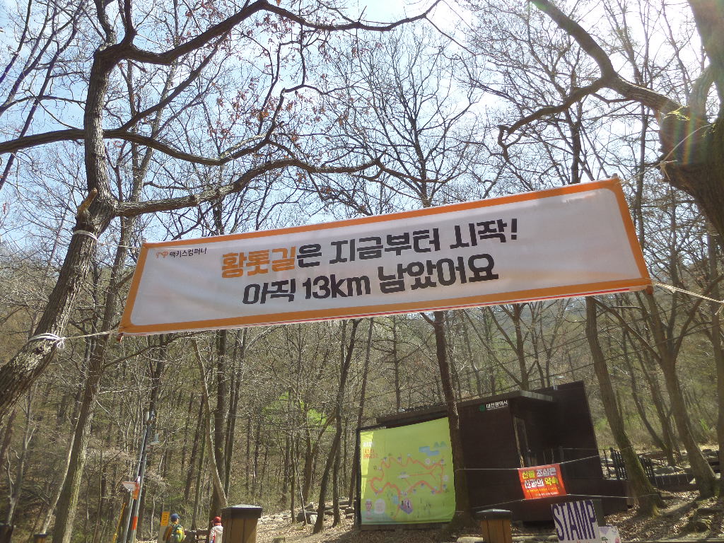 전체 황톳길 거리가 14.5Km이니까 이제 겨우 1.5Km 황톳길을 왔는데 아직도 13Km 남았네요
